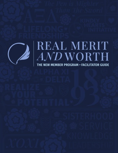 The New Member experience is a precious time of learning and education for our Sisters. To that end, we have created lessons and educational programming to enhance the New Member experience and bring our new chapter Sisters closer to one another and the heart of our dear Sisterhood. This workbook is the facilitation guide for Alpha Xi Delta's Real Merit and Worth: The New Member Program workbook.